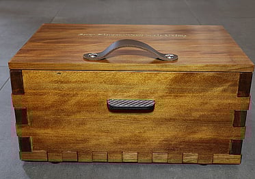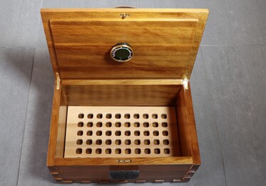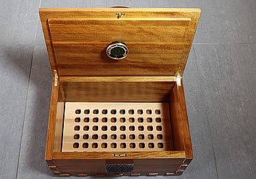 Or, an Ancient Kauri Box (unlined) with Brusso 90 degree recessed hinges for the lid. Cedar grate in the bottom adds a wonderful mild cedar aroma every time the box is opened.