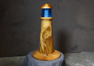 See our stylish lighthouse, hand-turned from Ancient Kauri wood and illuminated with a stunning blue LED resin light (220v).