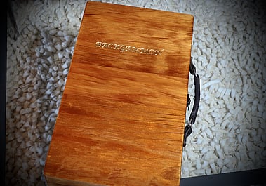 Ancient Kauri backgammon board. Sparkles with 45,000 year old Kauri shimmer. Inlaid solid Wenge and Maple points, as well as 12mm thick solid wenge and maple checkers. Hidden hinges close the board and include Leather dice cups with deluxe dice and doubling cube which fit perfectly inside. Leather carry handle with secure clasp for going mobile to wherever you may want to play.