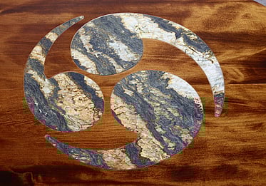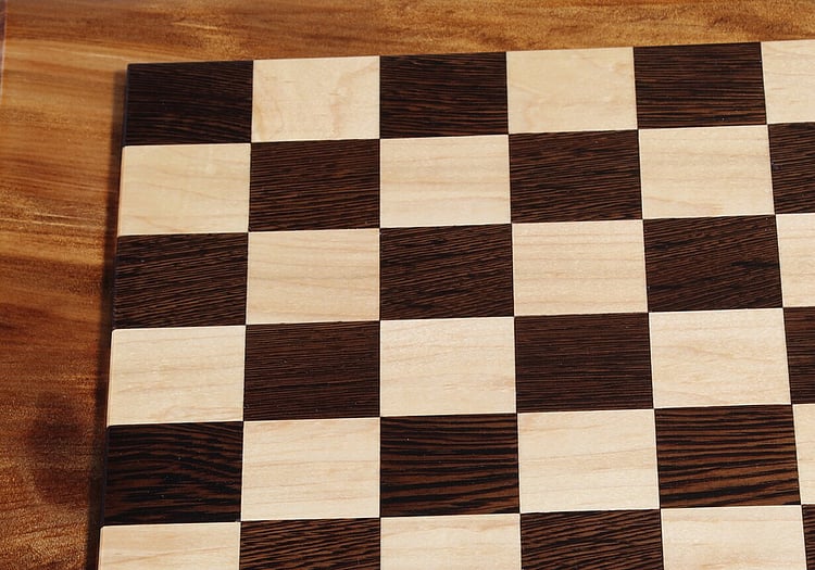 Solid Ancient Kauri board with raised solid wenge and maple squares.