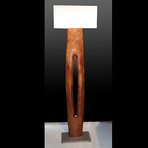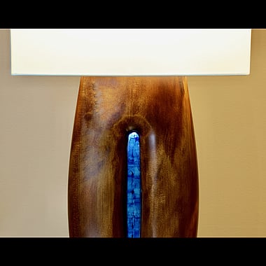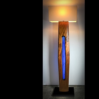 Ancient Kauri coupled with ocean blue transparent resin. Cnc machined from solid stock. Hand assembled and finished. Base height 1.5 metres plus shade is 1.8 total height