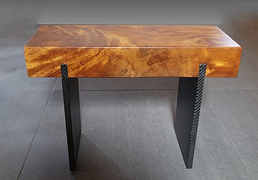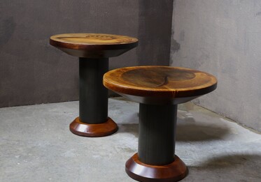 Selection of small Kauri "beer" tables (or Gin tables) are perfect for a glass or two next to your favourite chair. Easily picked up and moved for relocation. These Kauri tables are made using a variety of materials for the simple fin style legs. Examples include: anodised aluminium (several colours available), solid carbon fibre (a personal favourite) or a selection of timber species.