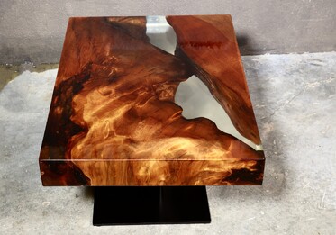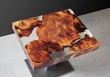 Ancient Kauri floating in a clear resin river. Beautiful detail and colour in the Kauri